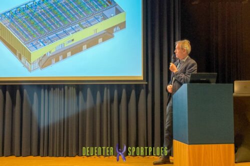 Jo Jongen (AGS Architects) vertelt over de bouw van de nieuwe Sporthal De Marke. Bij deze hal en de bijbehorende sportvelden wordt heel veel rekening gehouden met toegankelijkheid en duurzaamheid. De Sporthal wordt overdag gebruikt voor het bewegingsonderwijs van de naastgelegen school en ’s avonds en in de weekenden door verenigingen. ‘We hebben heel goed gekeken naar de eisen van de gemeente’, legt de architect uit. ‘Alle deuren zijn breed en bij de kleedkamers zijn ze nog breder, zodat ook alle sportrolstoelen er door kunnen. Bovendien zijn alle deuren elektrisch te openen vanuit een rolstoel of een scootmobiel. In principe zijn alle kleedkamers voor iedereen toegankelijk, maar er zijn ook nog twee met extra voorzieningen voor sporters met een beperking.’