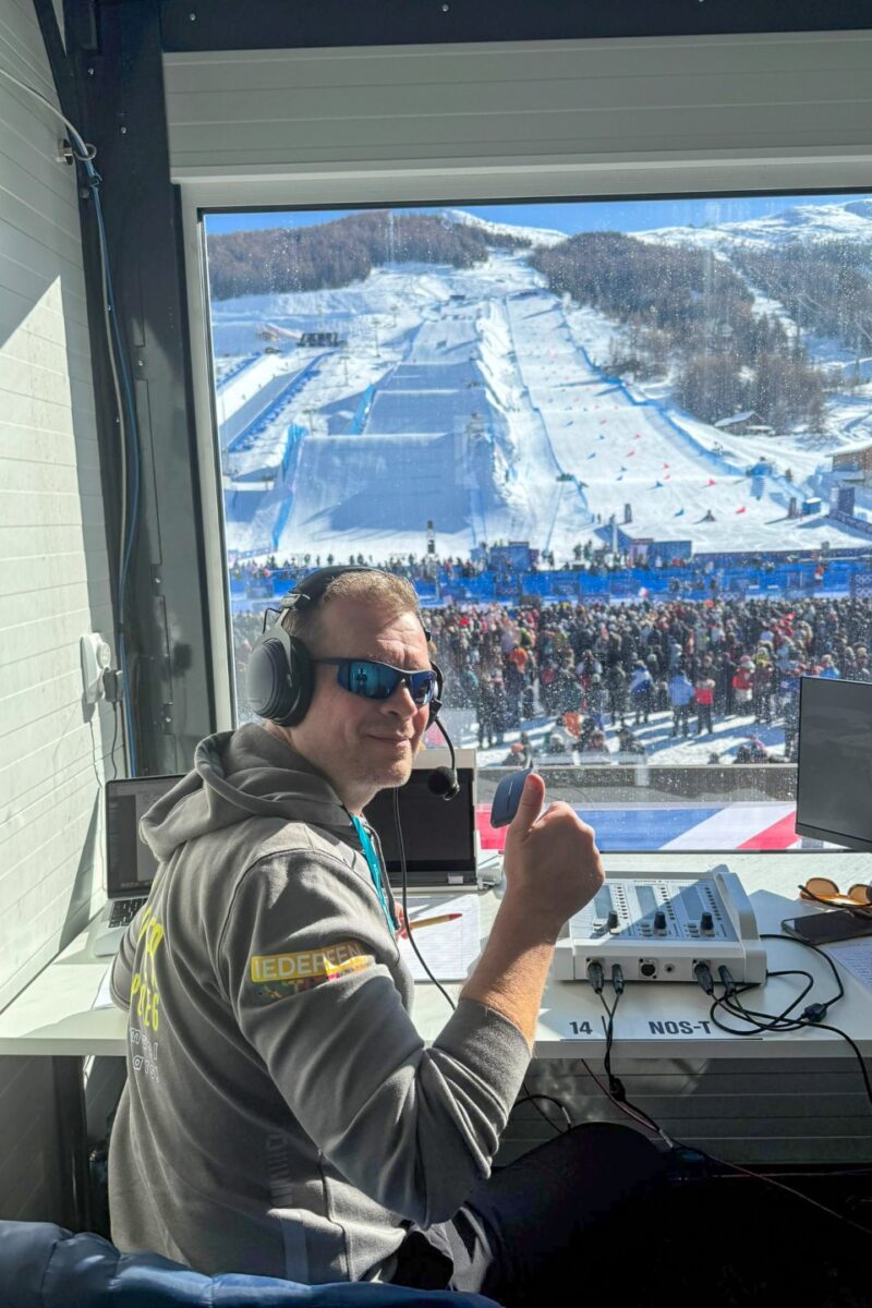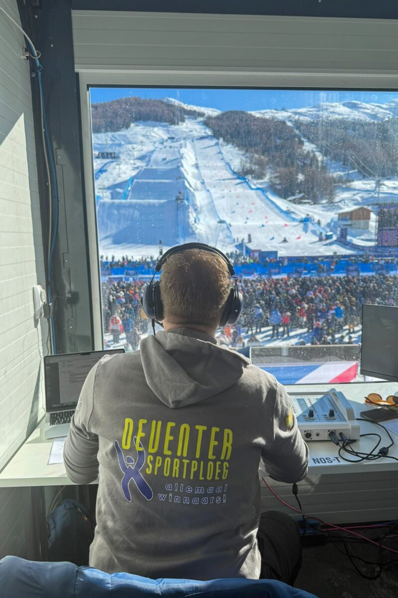 Vanuit een koud en besneeuwd Livigno verslaat NOS-sportverslaggever Maarten Tip het snowboarden en free style-skieën op de Olympische Winterspelen. Maarten is al jaren bevlogen ambassadeur van alle sporters van de Deventer Sportploeg. Vanuit zijn commentaarpositie stuurt hij ons deze foto’s in de kleding van de Deventer Sportploeg!